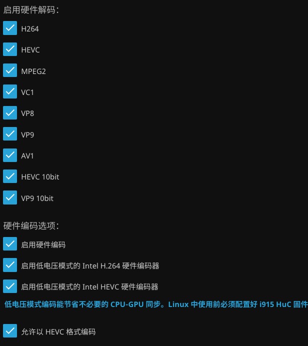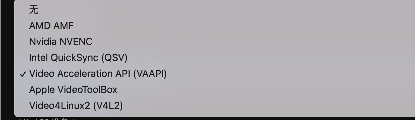 • VA-API: 紧支持Intel iGPUs、AMD GPU。